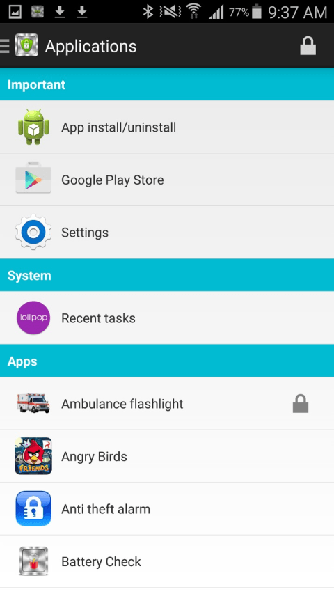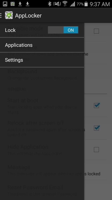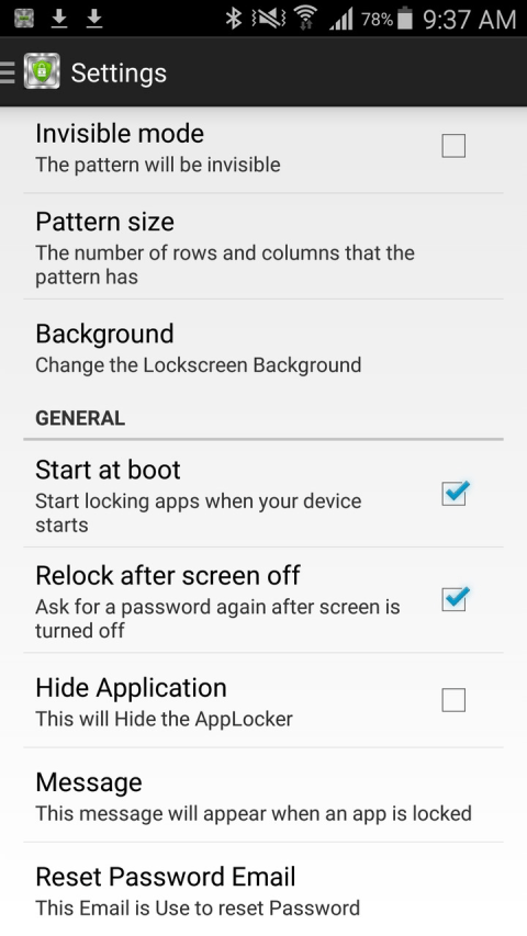 AppLock help you to lock your application which you don’t want to access without your permission. This application has feature of Pattern Lock and Password Lock. You can lock each application separately. AppLock restrict your applications to access without your permission. AppLock help you to prevent from Data loss from beginner users or childern. AppLock features list: ★ Comfortable locking pattern ★ Edit lock pattern ★ Application selection ★ Lock application ★ Settings For any suggestions or feature requests for AppLock please email us and we will get back to you Email ID: info.bensoftapps@gmail.com BenSoft - free applications for android