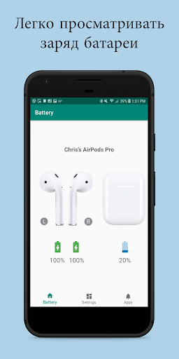 Приложение «PodAir - Уровень заряда батареи AirPods» позволяет пользователям Android просто и легко просматривать уровень заряда батареи в Apple AirPods и их чехле.