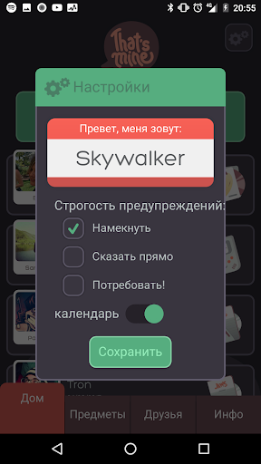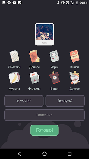 That’s mine! Позволит вам узнать, кому вы даете свои вещи. Отсортируйте все, что вы предоставляете через различные доступные категории, такие как видеоигры, книги, фильмы, записи, одежду, деньги, заметки ... Теперь, вы знаете кого спросить, когда вы захотите вернуть свои вещи.