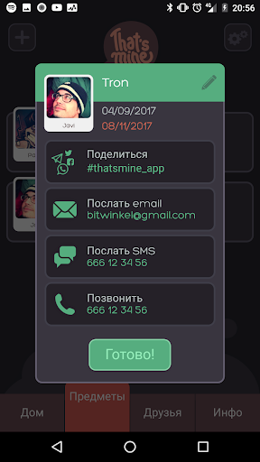 ✓ Выберите, кто заимствовал вещь из вашего списка контактов очень простым способом.