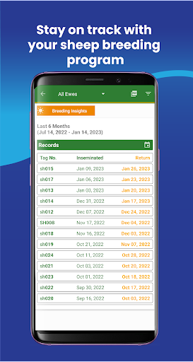 Наше приложение дает вам возможность планировать программу разведения вашей овец с точностью, максимизируя продуктивность и генетический потенциал.Используйте наши отчеты о размножении для выявления идеальных пар разведения, отслеживать даты ягненка и управлять записями потомства.