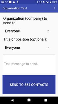 This allows the user to send broadcast text messages without people replying to the entire group. Organization Text allows filtering by title or position. The perfect simple solution for any organization or company to send a lot of messages quickly.