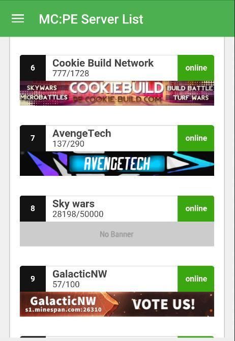 Это приложение было создано, чтобы дать вам легкий доступ к лучшим Minecraft Pocket Edition андроид серверов, вентилятор и вентилятор сделал поддерживается. Мы не связаны с minecraftpeservers, Mojang или Minecraft.