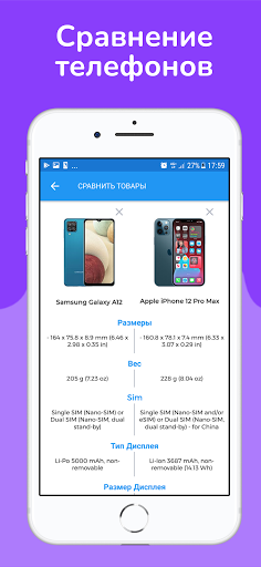 Получите быстрый обзор всех характеристик телефона по сравнению с другим телефоном, чтобы понять разницу между ними.