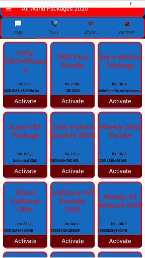 contain codes which include call Packages, sms Packages, net programs, data Packages. All APP is free 2020 brand new Application and feature state-of-the-art facts almost all programs, Warid sms package 2020,Warid internet packages 2020, Warid call package 2020, all network packages 2020 and Warid free call codes. All country Networks of Pakistan app Warid offer whole information approximately sms, call and worldwide offers of Warid.