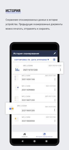 Сохранение отсканированных данных в истории устройства.