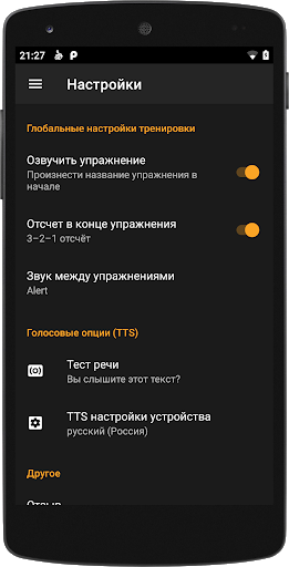 -> каждое упражнение может включать в себя звуковые уведомления (звуковое или голосовое событие, см. описание функции)