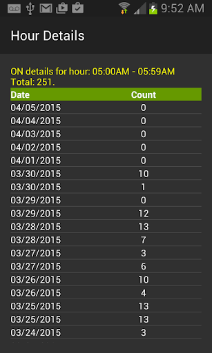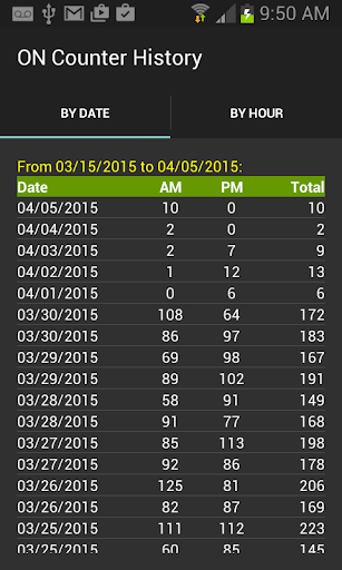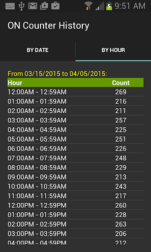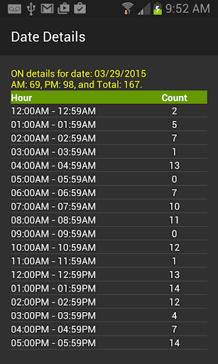 The history shows how many times you turned on your phone by daily (AM, PM, and Total) or hourly, and then you can select a date or hour to see more details of that particular date or hour usage.