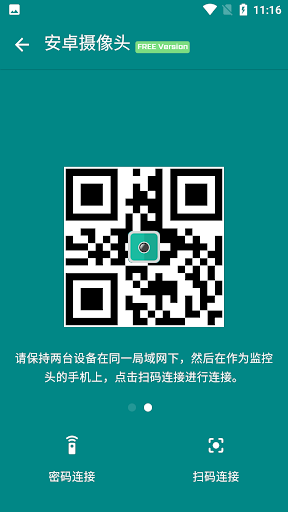 Устройство запускается одновременно, когда устройство является устройством камеры, нажмите «Это устройство - это камера», появится пароль ссылки и QR-код устройства.