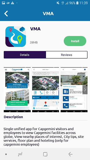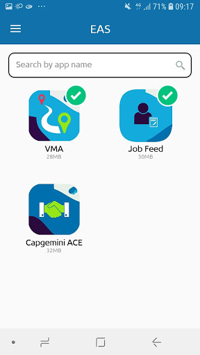 EAS - это родное каталог приложений Android для сотрудников Cap Gemini, клиентов, партнеров, консультантов поставщиков и подрядчиков, где они могут загружать Cap Gemini Snaнационные приложения в защищенной среде.Это частный магазин приложений для приложений Cap Gemini, доступных пользователю на основе их ролей.