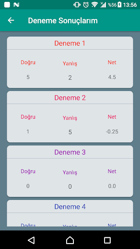 -Sonuçlarım kısmında her denemenin sonucunu görebileceksiniz.