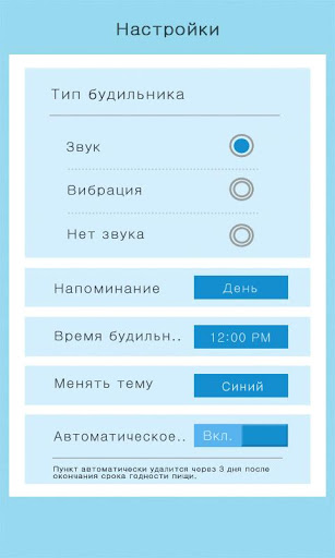«Мой холодильник» вы можете не забыть о том, что какая продукция хранится у вас в холодильнике. Функция предупреждения об окончании срока хранения не оставляет Вас просто выбросить продукцию в мусорное ведро.