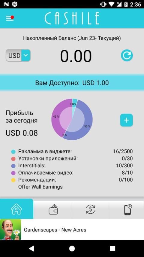 Мы регулярно работаем над улучшением Сashile Кошелька, чтобы предоставлять вам наиболее интересную и оплачиваемую рекламу.