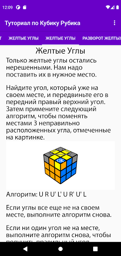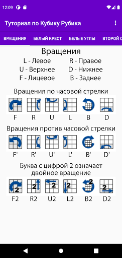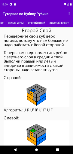 Это приложение позволяет узнать, как собрать кубик Рубика. Оно предназначено для начинающих и содержит классический метод. Читай и собирай!