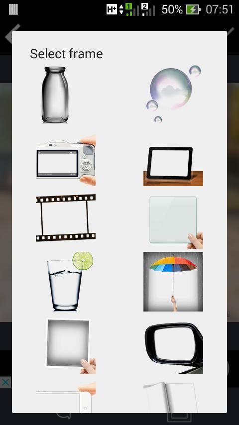 PIP камеры Photo Collage имеет различные типы кадров, а именно стеклянных рам и прозрачных рамок для фотографий. Таким образом, вы можете свободно выбрать рамку для фотографии. Мало того, что с помощью этого приложения вы можете превратить вашу фотографию в квадратную фотографию. Функция квадратного фото есть вы можете загрузить его на социальные медиа, не изменяя его размер, эта функция почти такая же, как редактор фотографий для приложений социальных медиа.