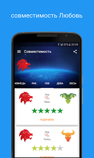 • Ваш гороскоп скачается на ваше устройство с Android и будет там, пока автоматически не обновиться на следующий день. Поэтому у вас под рукой всегда будет свежий гороскоп, готовый к прочтению, даже без подключена к интернету.