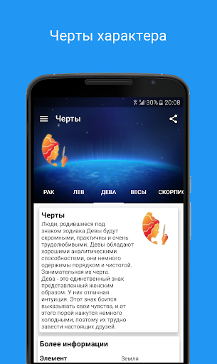 • Это приложение позволяет выбрать интересующие вас знаки зодиака и переходить от одного к другому перемещая их пальцем.