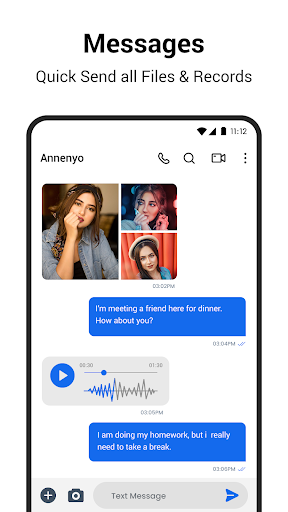 sharing photos, audio, video even having group messages. Using a funny texting messages app to replace stock messages app.