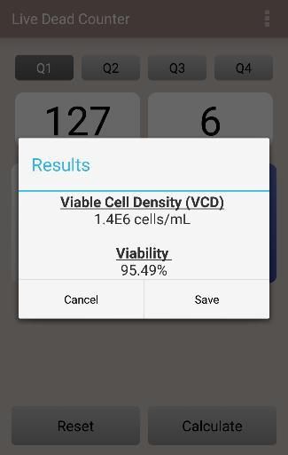 Manual cell counter to automatically determine viable cell concentration and viability. Features include: