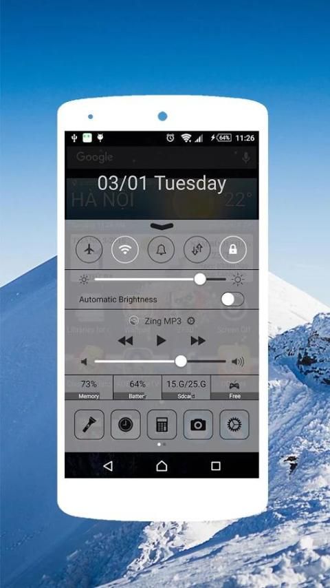 Панель управления - Центр управления представляет собой ultility инструмент для вас. Панель управления Переключатель содержит много вещь, которую вы используете ежедневно. Обычно это Android системы и все установленные приложения, которые вы обычно используете. Они являются вспышки света, WiFi, калькулятор. И еще что-то есть камера, музыка, режим воздуха самолет. Вы можете быстро переключить свой переключатель и открыть свои любимые приложения с центром управления. Быстрый доступ теперь к вашим любимым приложением.