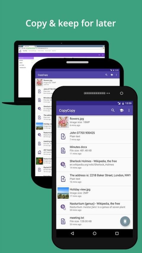 Почему это так трудно передать вещи между телефоном в руке и компьютером на вашем столе? С CopyCopy, просто использовать регулярные операции копирования, а затем мгновенно вставить или просматривать на любом из ваших устройств!