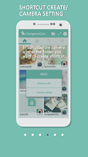 of the folder to the home screen. When you click the shortcut to run the camera, photos taken are saved in selected folder.