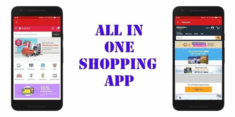 это приложение сохранить ад много батареи и мобильного пространства на устройстве, так как вам не придется искать вокруг different- другое приложение и не может иметь, чтобы сохранить их в устройстве, только одно приложение все в одном решении для вашего легкого опыт покупок!