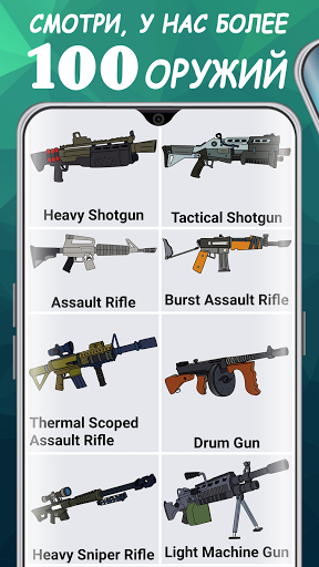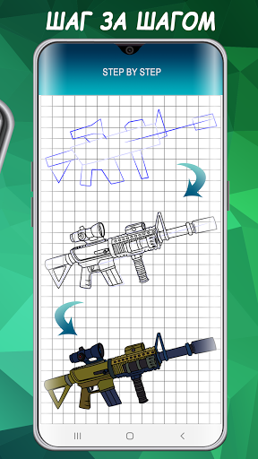 Приложение научит вас рисовать оружие на листке бумаги. Для удобства мы реализовали уроки на листке в клетку. Ведь у нас есть, что нарисовать! Более 100 вариантов оружия из популярных игр, таких как CS GO, Fortnite и других. Автоматы, пистолеты, ножи, гранаты, винтовки, пулеметы и многое другое. Так чего же вы ждете? Скорее устанавливайте и рисуйте оружие.
