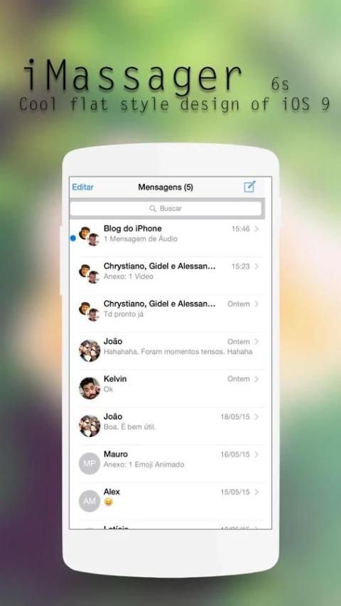 Посланник IOS 9 стиль очень один на iPhone 6с. Белый цвет является основным цветом, элегантный и стильный. И теперь вы можете наслаждаться целый новый посланник приложение на вашем телефоне. Попробуйте сейчас посланник IOS 9 стиль телефона 6s