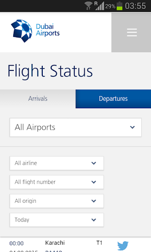 Простое приложение, которое позволяет следить за Дубайский международный аэропорт Дубая статус Расписание авиарейсов режиме реального времени.