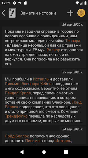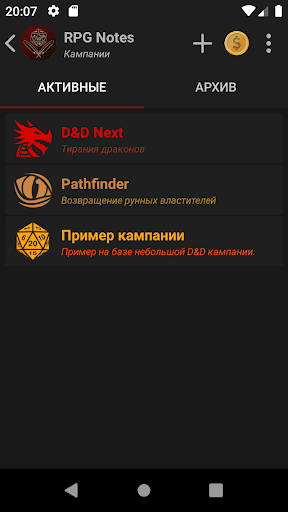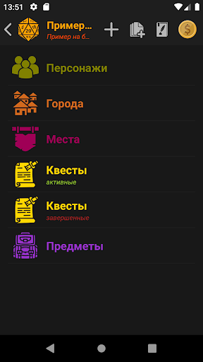 RPG Notes позволит вам вести заметки по ходу ваших игровых кампаний (D&D, Pathfinder, Starfinder, и т.д.). Сохраняйте персонажей, города, квесты, историю ваших приключений и т.д. Вы больше не потеряете и не забудете тетрадь с игровыми заметками, они всегда будут в вашем смартфоне. RPG Notes станет незаменимым инструментом как для игроков, так и для мастеров.