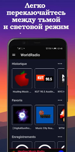Просыпайтесь под любимый ритм радио. Установите будильник для любимого радио. Мировое-радио разбудит вас в это время и будет транслировать ваше радио для вас.
