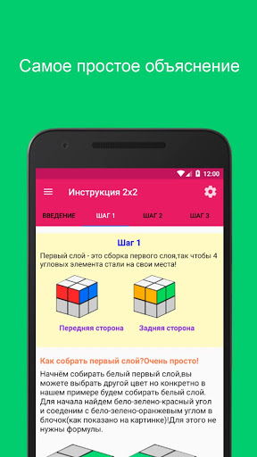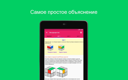 Вы давно хотели научится собирать Кубик 2х2, но не знали как это сделать?Хотите удивить своих знакомых,как вы собираете Кубик меньше чем за 1 минуту?Это приложение для вас!В приложении вы найдете пошаговую инструкцию, как собрать Кубик 2х2.Всего за 3 шага вы соберете Кубик.Инструкция включает в себя картинки и текст,чтобы легче было учиться собирать Кубик 2х2. Также в приложении есть Секундомер,с помощью которого вы сможете собирать Кубик на время.