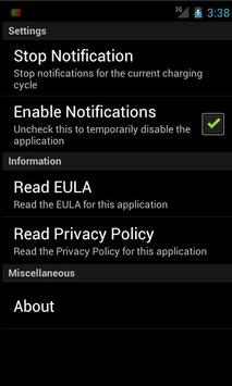 Gives you the option to disable the notifications for the current charging cycle, or until re-enabled, in the settings menu.