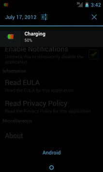 WARNING #1: While this application is active(while charging your device), the notification light will not blink for any other notifications, only for the charging status. If you require the notification light for something else while charging, disable this service for the current charge cycle in the settings menu.