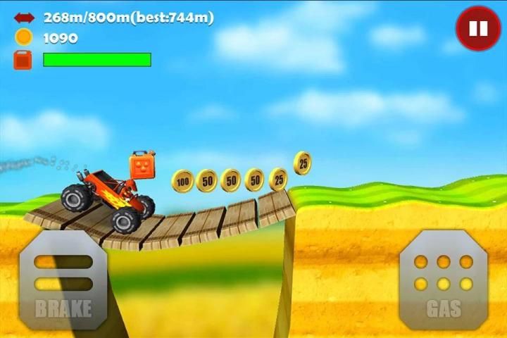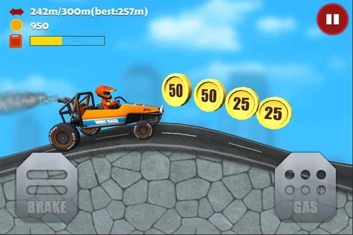 Взбирайтесь на холмы на автомобиле или мотоцикле с невероятно реалистичным управлением и преодолевайте уникальные сложные трассы, которые проходят по горам, шоссе, утесам и пещерам. Получайте за трюки монеты и покупайте с их помощью дополнительное оборудование для автомобиля, чтобы повысить свои результаты.