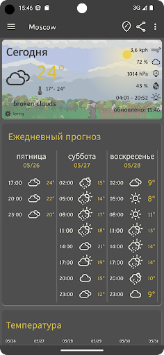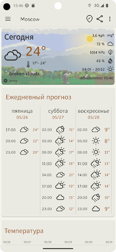 Получите прогноз погоды на ближайшие несколько дней простым и интуитивным способом, без сложных настроек или экранов.