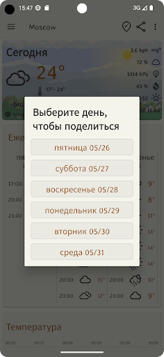 📤 Поделитесь прогнозами погоды с друзьями и контактами.