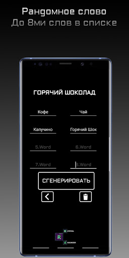 ◾Генерация случайного слова из персонального списка. Персональный список вмещает в себя до 8 слов.