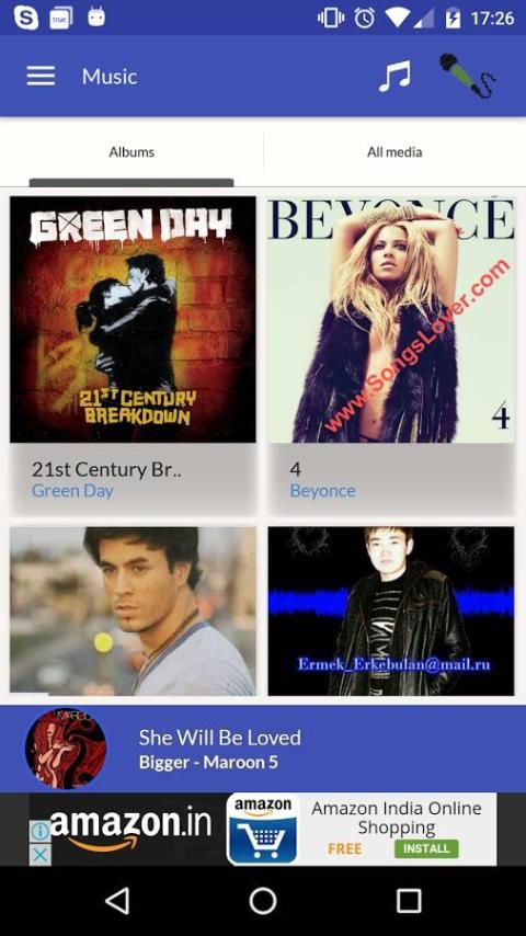 - Просматривать и воспроизводить музыку по альбомам, исполнителям, песни, папки и плейлисты