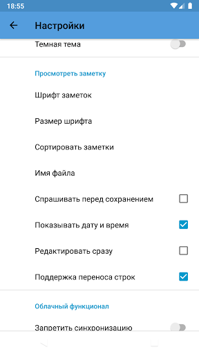 - выбор шрифтов заметок.
