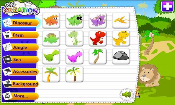 Kid Creation is an educational and entertaining kids game. It helps kids to create their own scene from available objects. With parents assistance it can also develop imagination skills through the creation of a story.