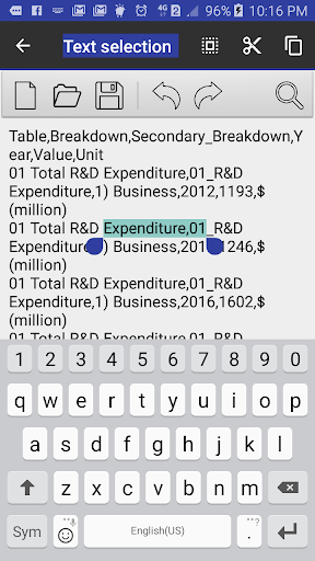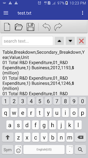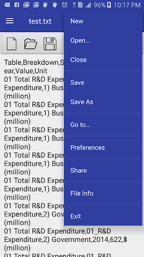 Вы можете «создать», «Open» и «Сохранить» файл из / в память телефона. Он включается простой файловый браузер, который поможет вам «выбрать файл» при открытии файла и «выбрать местоположение» при сохранении файла. По умолчанию файловый браузер фильтрует список файла, который отображает расширение «.txt», но вы можете настроить его, чтобы показать все файлы (но не скрытые файлы), отменив флажок «TXT File».
