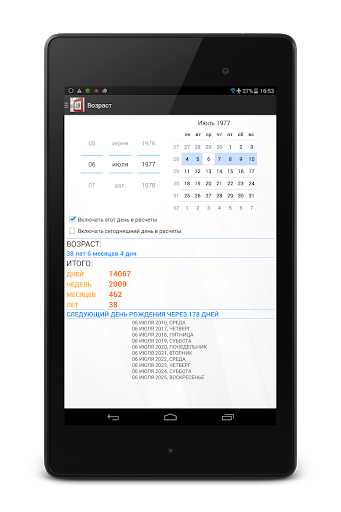 - Расчет точного возраста с определением дня недели грядущих дней рождений