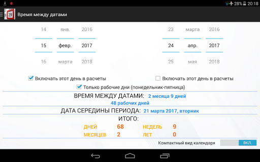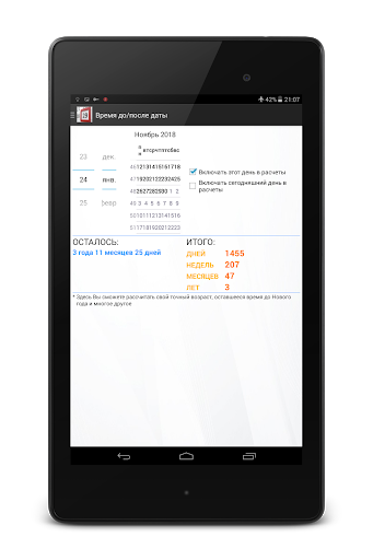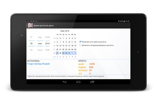 Может быть очень полезной для быстрых расчетов при отсутствии перед глазами календаря. Используя программу, Вы сможете узнать сколько дней живете на свете, сколько осталось до важной даты и многое другое