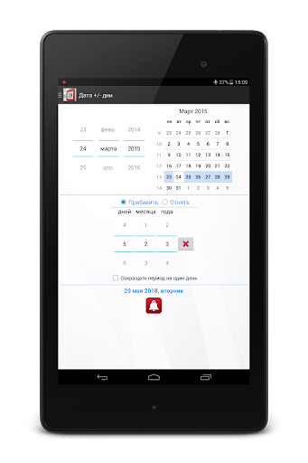 - Добавление записей в календарь (напоминаний) на рассчитанную дату (PRO-версия)