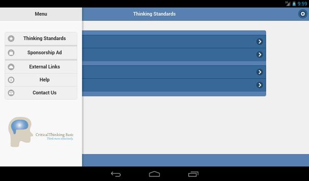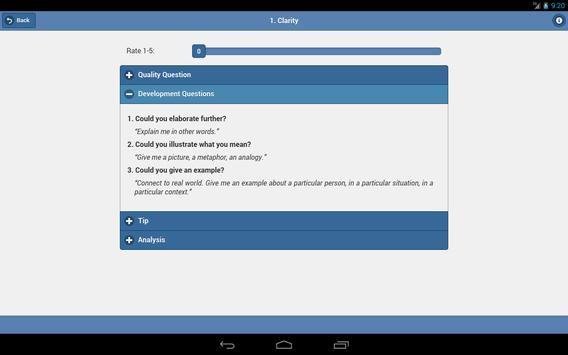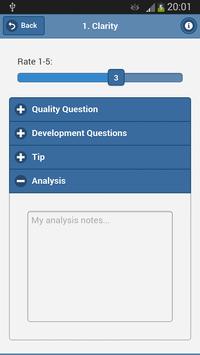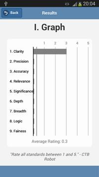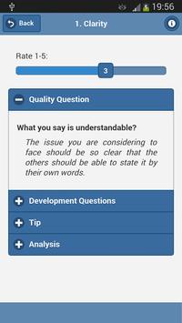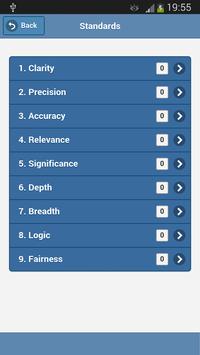 The app helps you to assess and improve the quality of a thought: it helps you to evaluate the quality of an idea, a decision, an opinion, a presentation, an article, etc., through nine Universal Standards of Thinking.