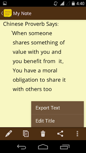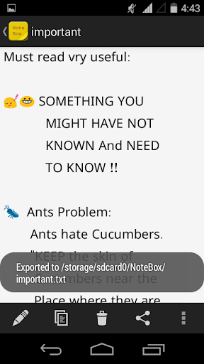 Additionally NoteBox let's you edit and export notes in text format. Customize fonts, font size. If your phone doesn't support hindi then choose hindi font available in settings and you can read and edit messages in Hindi and other languages as well. Create notes directly from clipboard data, no need to paste.