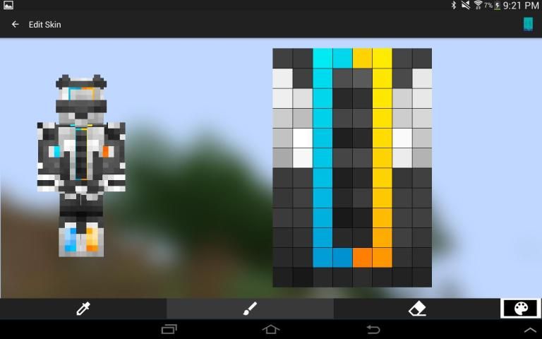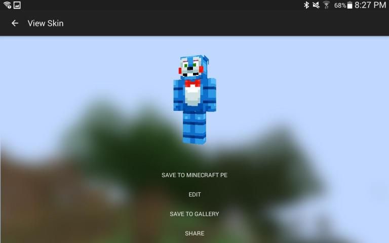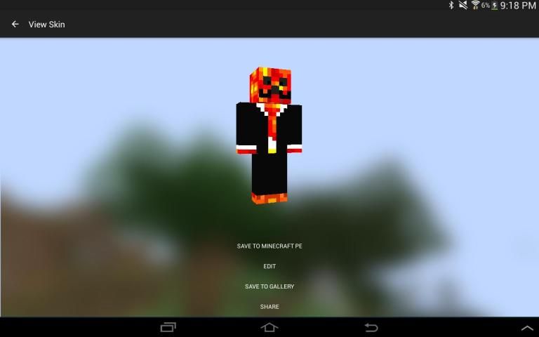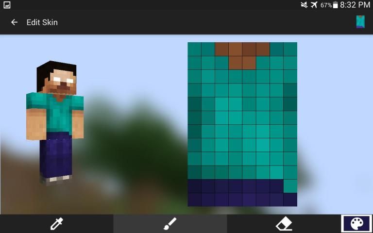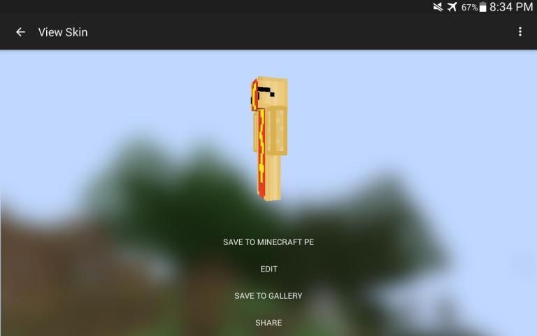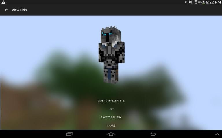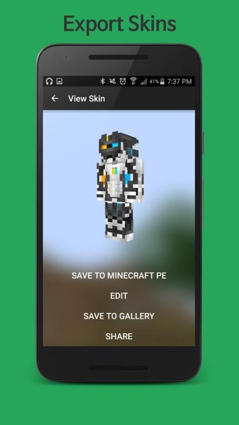 После завершения, экспортировать кожу в галерею, Minecraft PE, или поделиться с друзьями