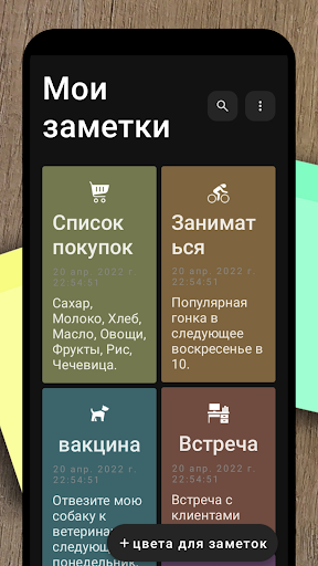 Выберите один из его ярких цветов на экране, чтобы мгновенно найти нужную заметку.